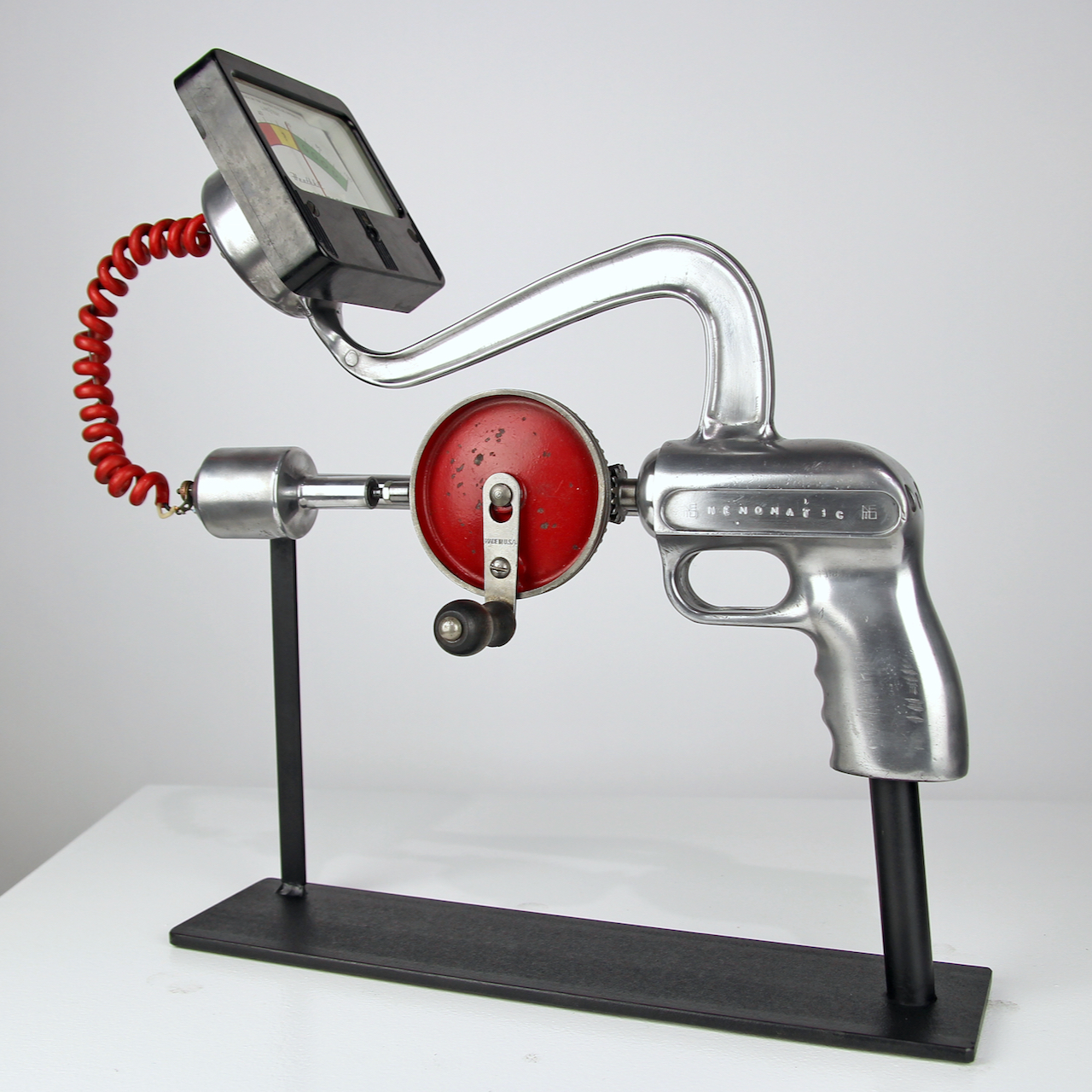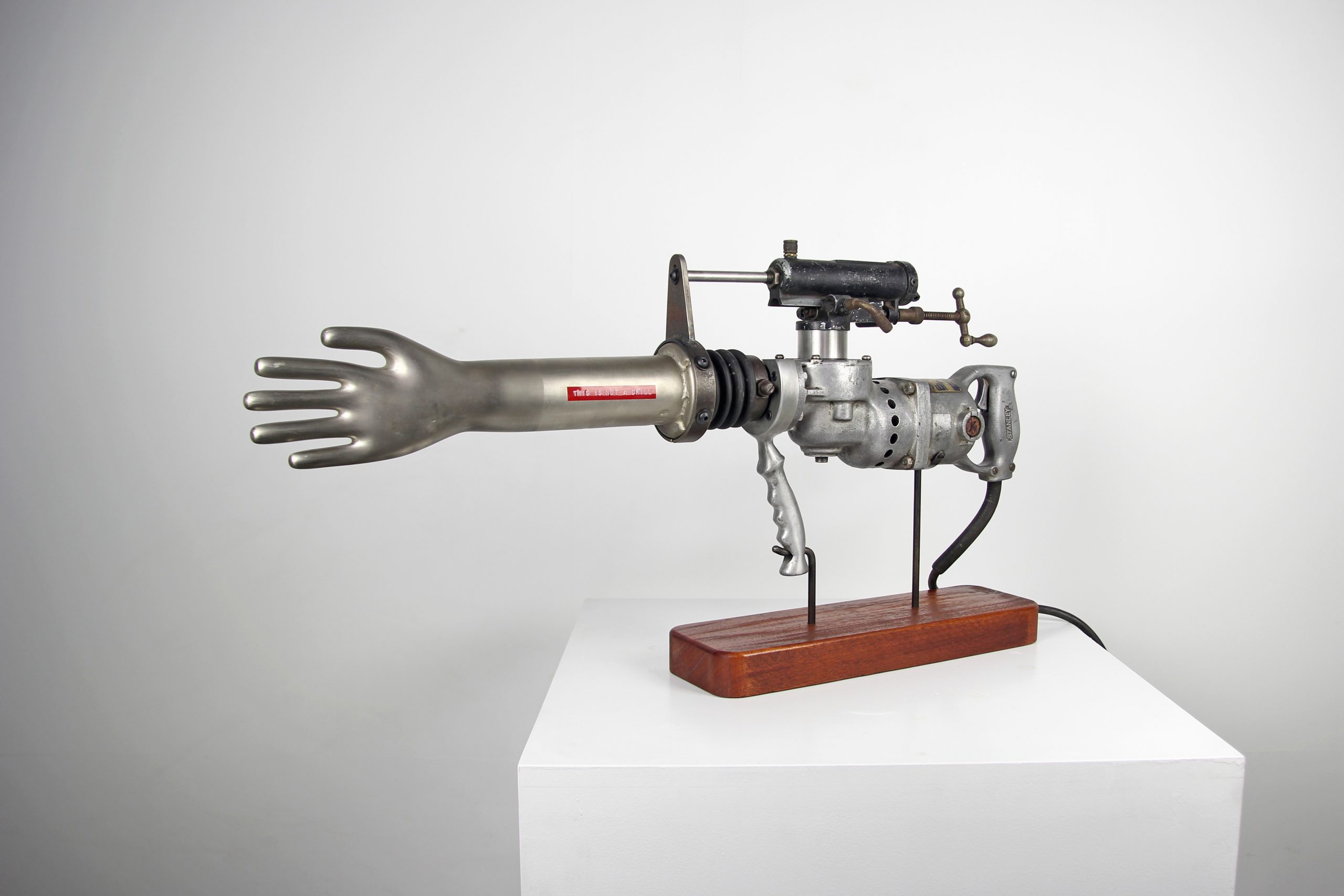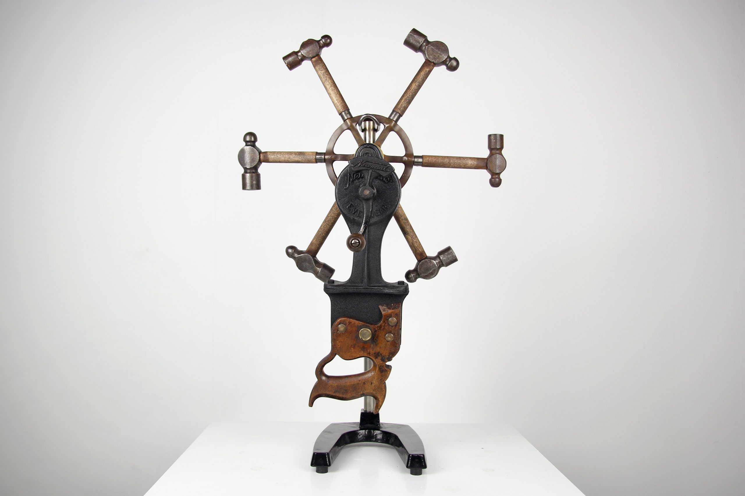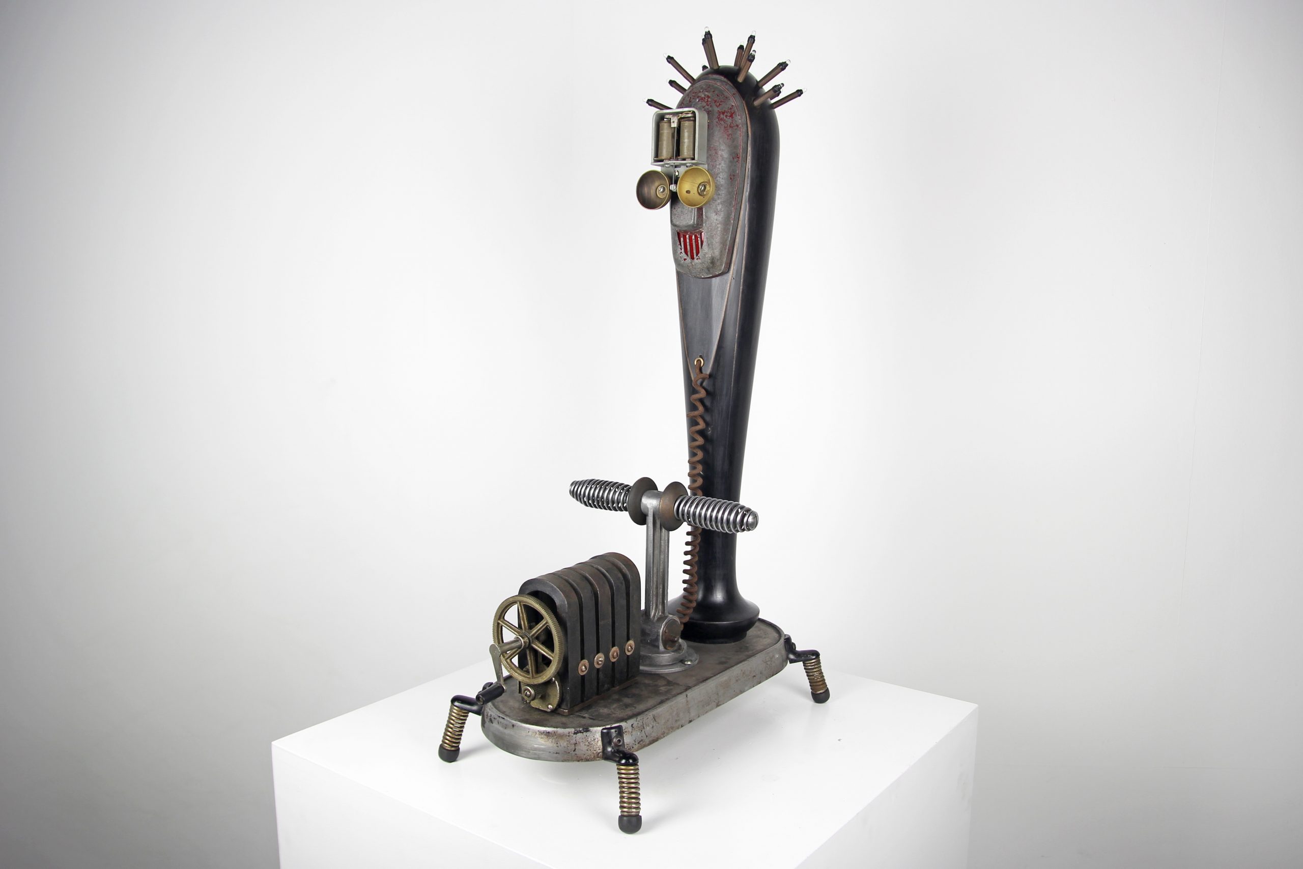 “Retro-Speculative” is artist Nemo Gould’s deep dive into the remnants of the machine age. Painfully aware that we are surrendering our experiences to the virtual realm, Gould strives to pull us back to the tangible through the materials and craftsmanship of the pre digital era. The result is an array of incredible sculptures carefully crafted from found materials, ranging from fantastic creatures, to animated narratives, to reimaginings of the nature and intent of tools. As the title would suggest, “Retro- Speculative” explores several themes from Gould’s broad palette, all seeking to engage the viewer through visceral nostalgia, and offering speculations on where we are going based on where we have been.