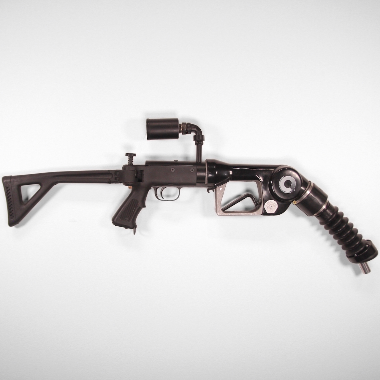Gas pump, shotgun, fuel gauge, electrical connectors, aluminum.
