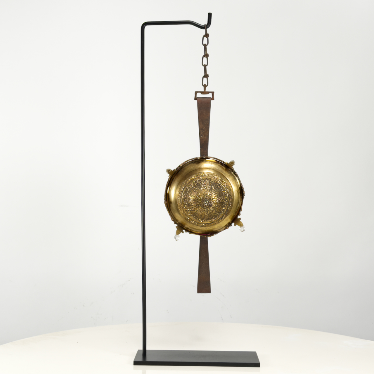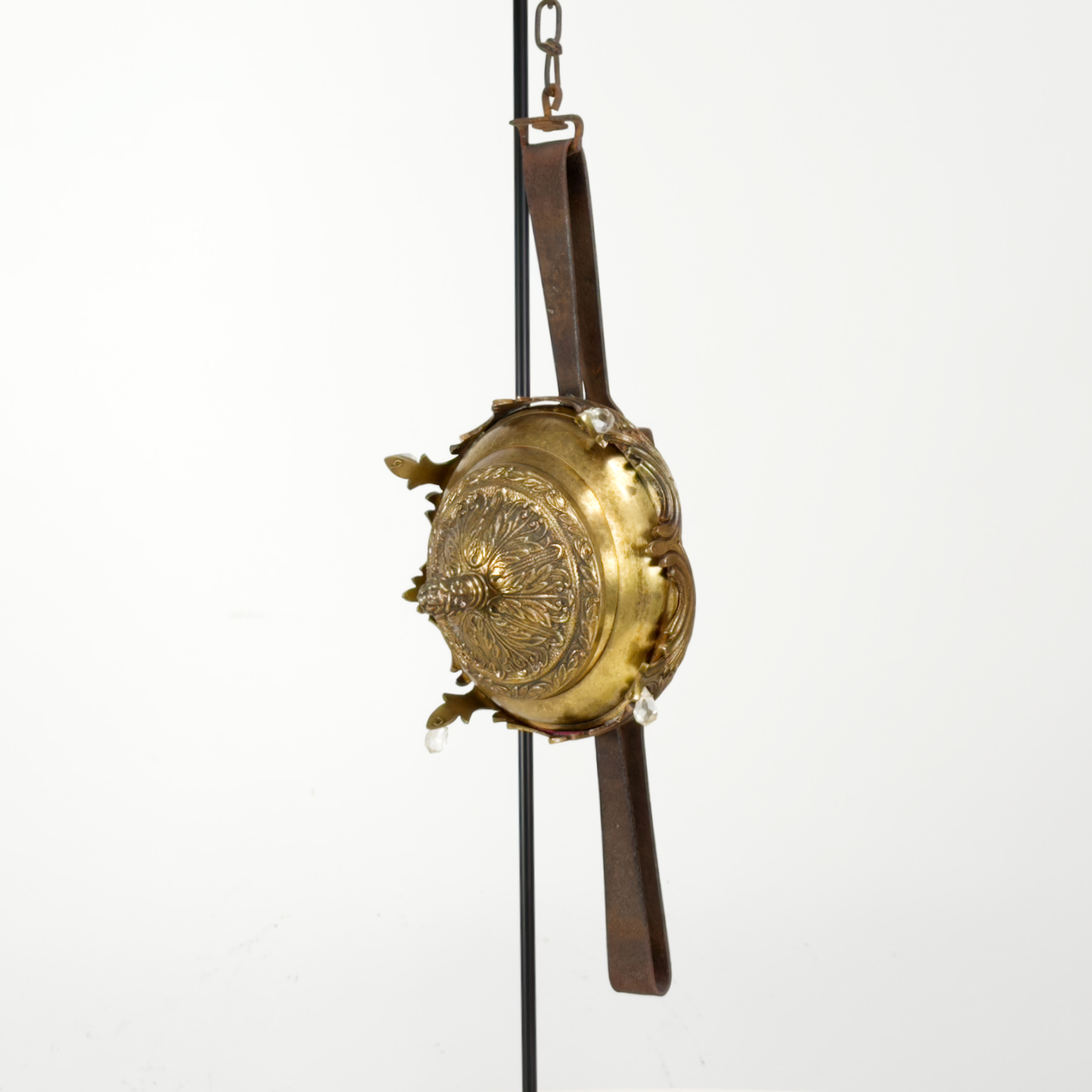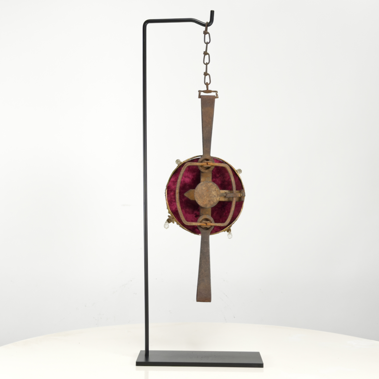 Animal trap, chandelier parts, Steel, Velvet.